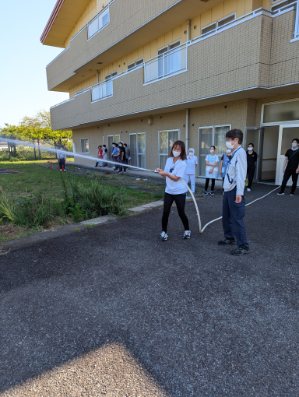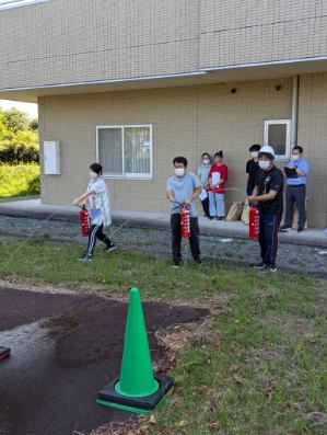 株式会社セルコ様の指導のもと、消防訓練の一環として、消火栓を使用した放水訓練と水消火器を使用しての消火訓練を実施しました。