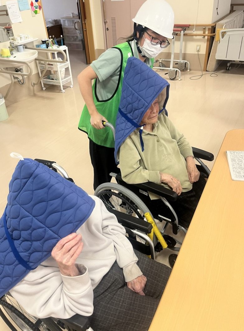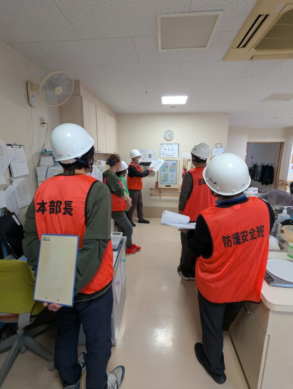 昨年から重点的に行っている津波を想定した垂直避難訓練に加え、消火班や救護班等の各班の動きの確認も実施いたしました。また、避難訓練終了後には職員に対し、防火管理者による通報装置の扱いの指導も行いました。